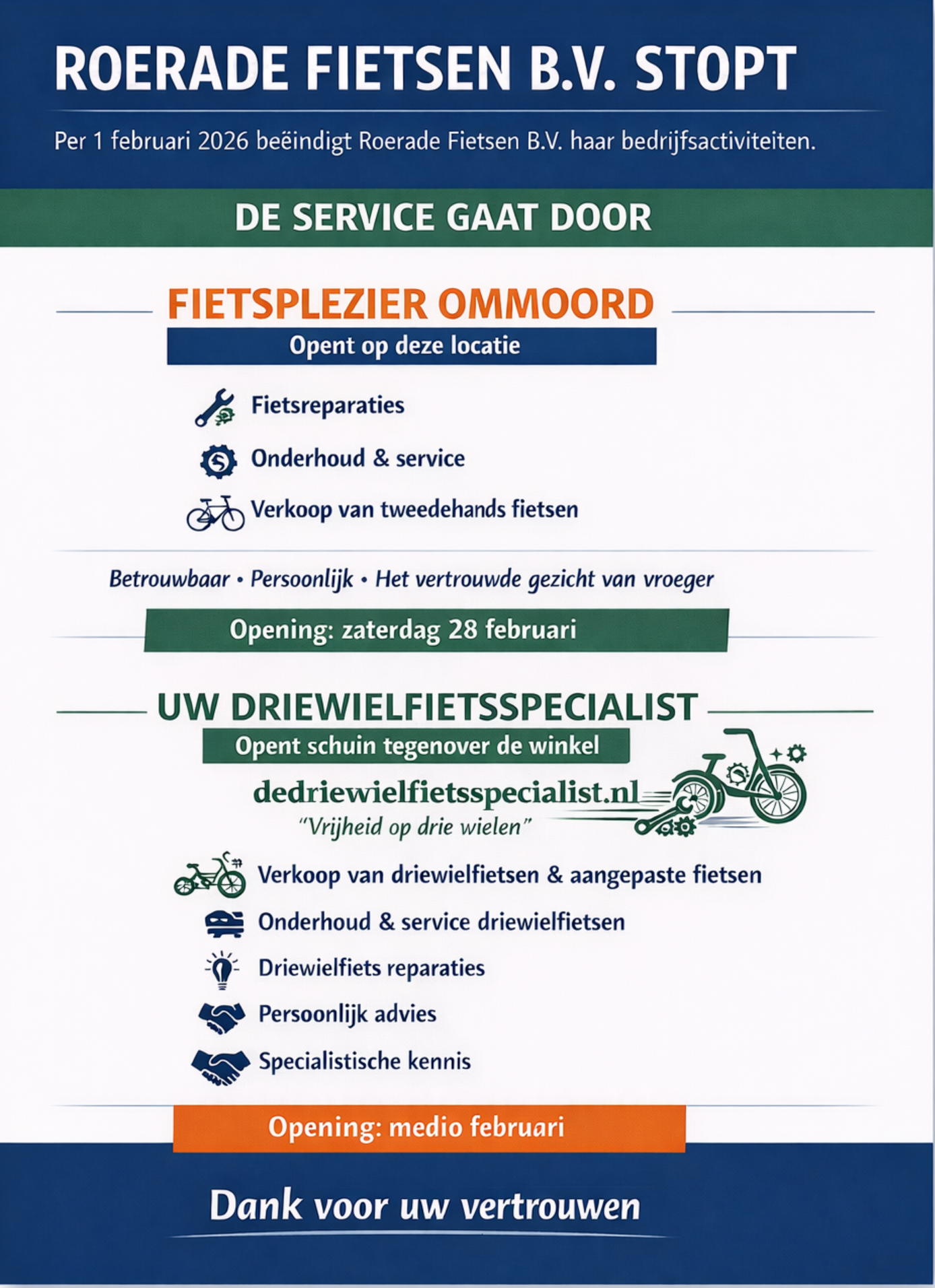 i.v.m. de veranderingen en aanpassingen is de winkel/werkplaats reeds gesloten.