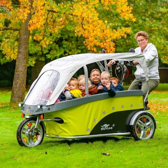 De GoCab is een speciale elektrische bakfiets/fietstaxi voor kindervervoer. In deze BSO-fiets kunnen 8 kinderen veilig vervoerd worden. De GoCab voldoet aan alle wettelijke veiligheidseisen